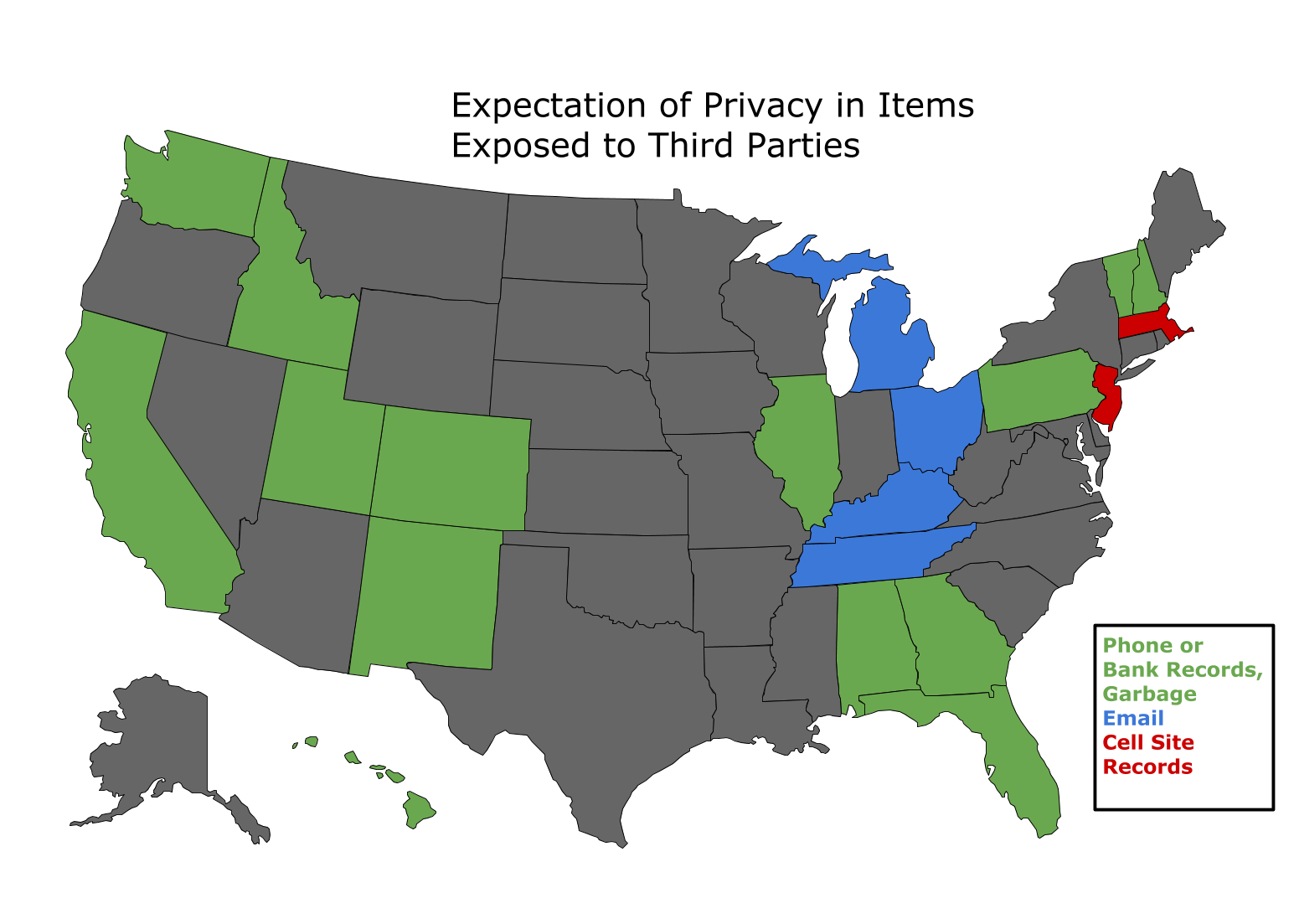 - 3. States where there's an expectation of privacy in phone records: Alabama (cell site), California, Colorado, Florida (phone and cell site), Georgia (cell site), Hawaii, Idaho, Illinois, Massachusetts (cell site), New Jersey (phone and cell site), Pennsylvania, Washington. By statute, Georgia and Oregon require police demonstrate probable cause to obtain phone records.