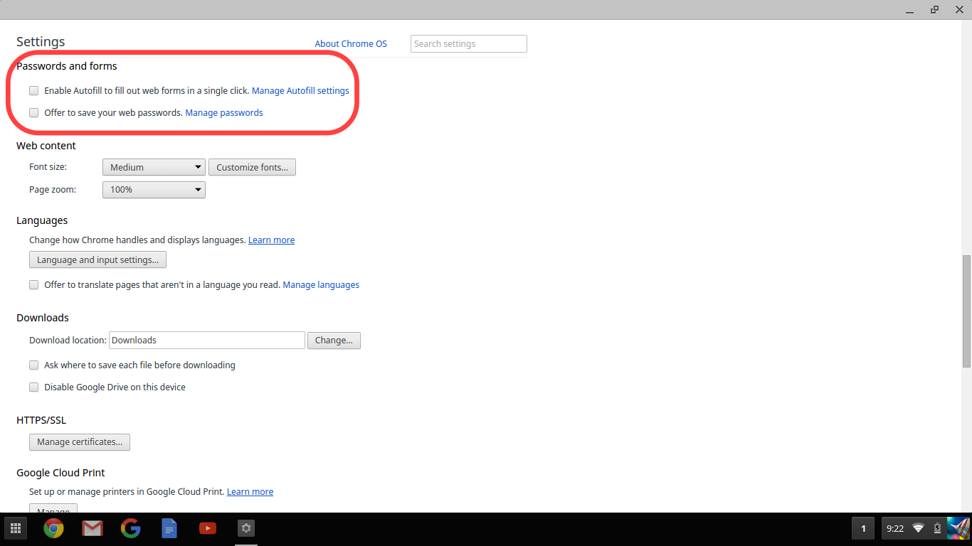 Update December 17, 2015: Added an explanation of how to encrypt Chrome Sync data so that students can take advantage of Chrome Sync without sharing their browsing history and other personal information with Google, and pointed out that enabling autofill and password saving is OK if Chrome Sync is disabled or encrypted.