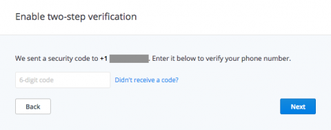 Shortly after you click, you will receive a text message with your verification code. Enter it and click “Next.”