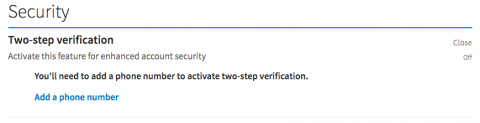 LinkedIn recently recommended two-factor authentication to users after 117 million user passwords were compromised and put up for illegal sale online this past May. This came after a related 2012 hack, in which about 6.5 million LinkedIn users’ passwords were compromised and posted to online forums. Although the passwords were not stored as plaintext (they used a hashing algorithm) in both cases, they were stored with weak enough protection that they were easily cracked. In addition to making strong passwords and changing them often, 2FA is an easy, powerful defense in the face of large-scale, password-stealing hacks.