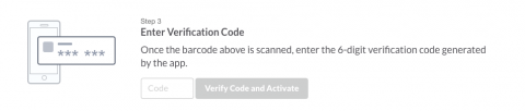 If you choose to use an authenticator app, select “Use an app” and follow the instructions to download an authenticator app if you haven’t already, scan the QR code, enter your verification code, and click “Verify Code and Activate.”