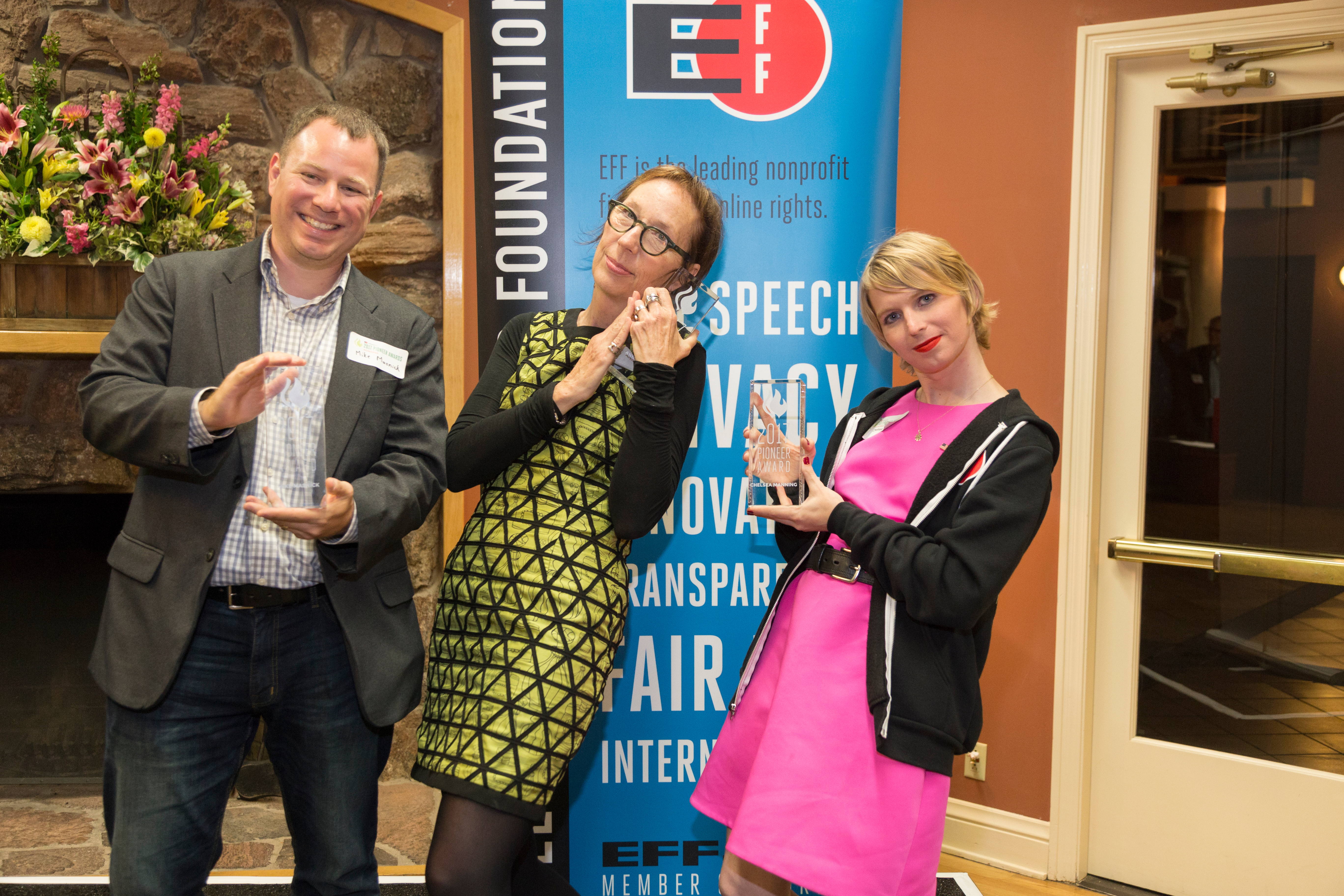 EFF Award Winners Mike Masnick, Annie Game, and Chelsea Manning