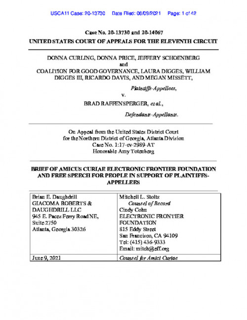 Voting is the cornerstone of our democracy. The mechanics of how we vote, and how those votes are counted, are critical to ensuring our votes are meaningful. EFF supports paper records for every vote, and automatic, risk limiting audits for every election. We'll oppose legislation that doesn't include those two critical measures. EFF opposes online voting.