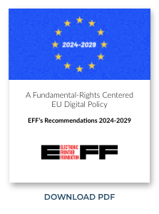As the new mandate of the European institution begins – a period where newly elected policymakers set legislative priorities for the coming years – EFF today published recommendations for a European tech policy agenda that centers on fundamental rights, empowers users, and fosters fair competition. These principles will guide our work in the EU over the next five years. Building on our previous work and success in the EU, we will continue to advocate for users and work to ensure that technology supports freedom, justice, and innovation for all people of the world.