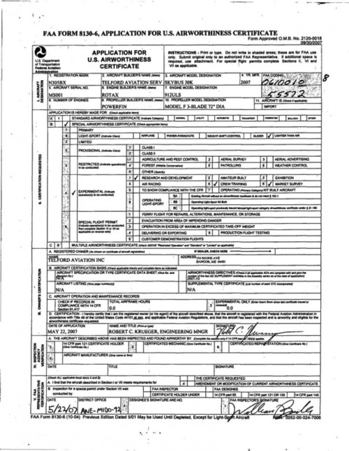 Document | August 9, 2012 TelfordAviation2-N305BX Registration Read more about TelfordAviation2-N305BX Registration