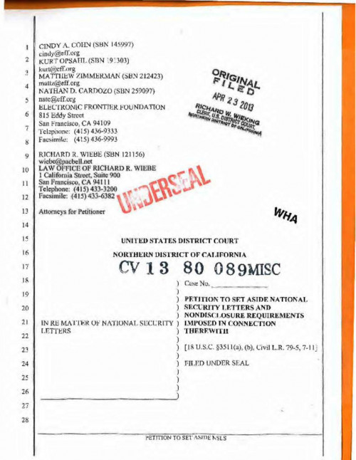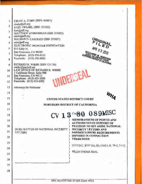 Document | April 23, 2013 Memorandum of Points and Authorities in Support of Petition to Set Aside NSLs Read more about Memorandum of Points and Authorities in Support of Petition to Set Aside NSLs